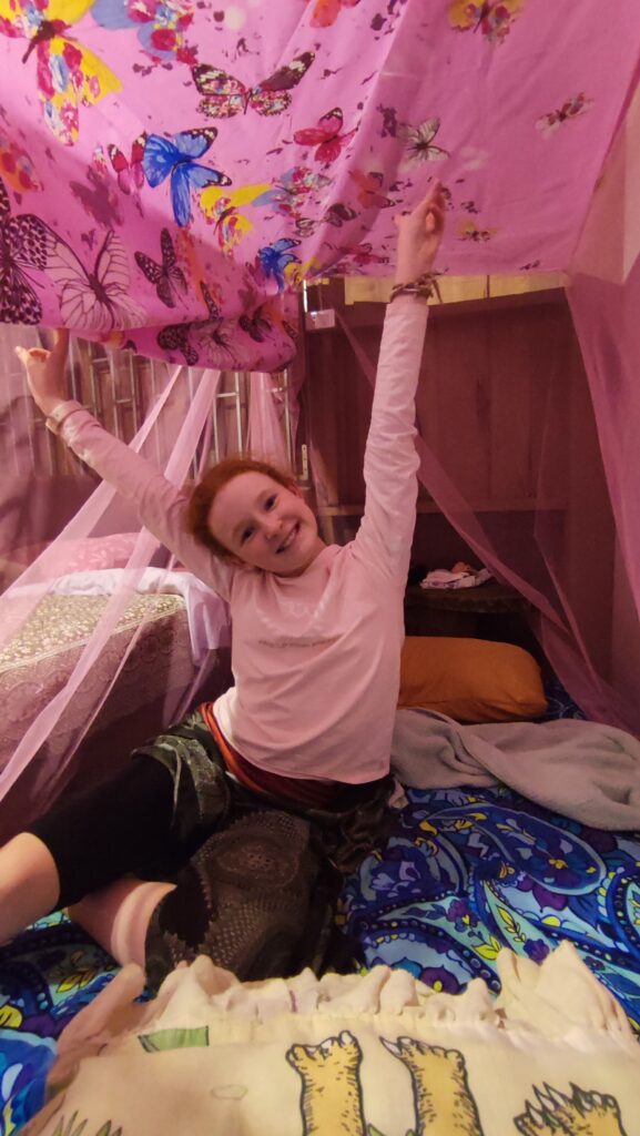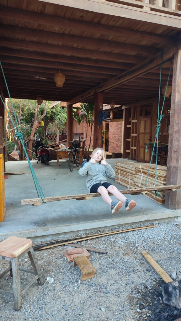 Notre première boucle en scooter depuis le début du voyage. Nous avons fait 86 kilomètres pour débuter la journée . Nous devions d’abord faire une visite de plantation de café mais vu qu’on avait raté la première balade de 11h30 parce qu’on a dû retourner au bureau de poste avant de partir. Donc on s’est dit qu’on allait continuer jusqu’à la Guest house et qu’on allait revenir pour la deuxième visite de 15 h 30 . Quand on est arrivé à la guest house on s’est rendu compte qu’il était déjà 12 h 30 . Est nous en tant que supers héros aux pouvoirs de l’escargot, le temps de manger avec le service un peu beaucoup lent du Laos, de se brosser les dents, de faire pipi, de découvrir la chambre et de déposer nos sacs, de faire une petite sieste pour l’un d’entre nous parce que on été fatigué et pour ceux qui ne faisaient pas la sieste de se reposer. Alors après tout ça! mettre les casques et partir pour 30 minutes de scooter c’était vraiment impossible! Et en plus vu que la visite dure 2 heures ça voulait dire qu’on serait revenu pour 17 h 30 donc dans le noir et maman déteste conduire dans le noir.